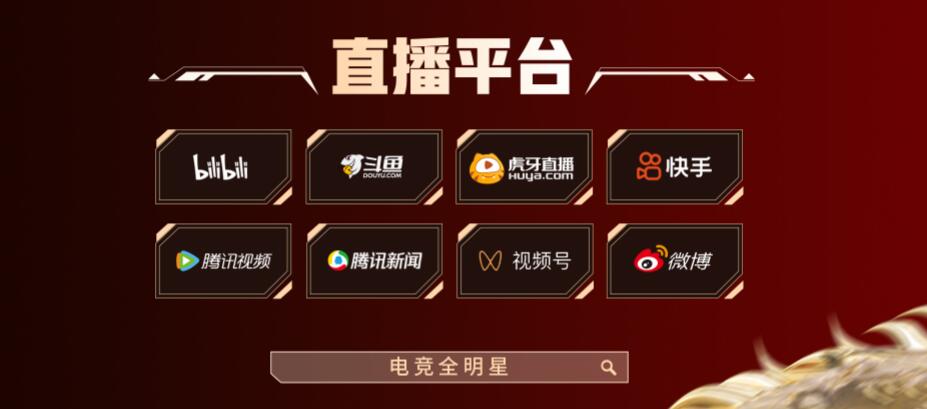 1、電競全明星新年賽直播平臺包括:bilibili、斗魚、虎牙、快手、騰訊視頻、騰訊新聞、視頻號、微博