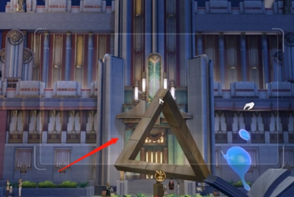 3.傳送結(jié)束后,可以看到后面的廣場,中央有一個(gè)雕塑。
