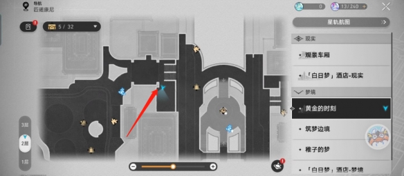 1.首先我們來到游戲中,前往地圖上那個黃金時刻的二樓位置。