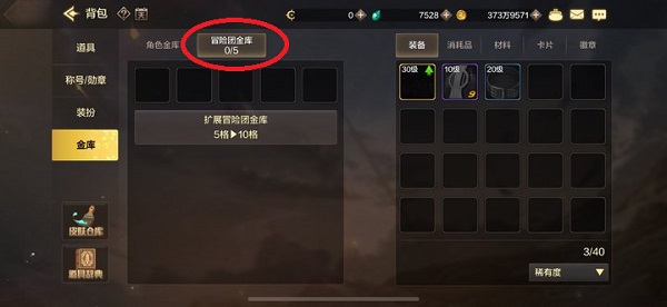 4、轉賬完成后,登錄接收賬戶角色,打開冒險團的金庫,即表示轉賬成功。