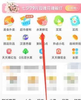 1.首先打開餓了么APP,在首頁找到【水果鮮花】,點擊進入。