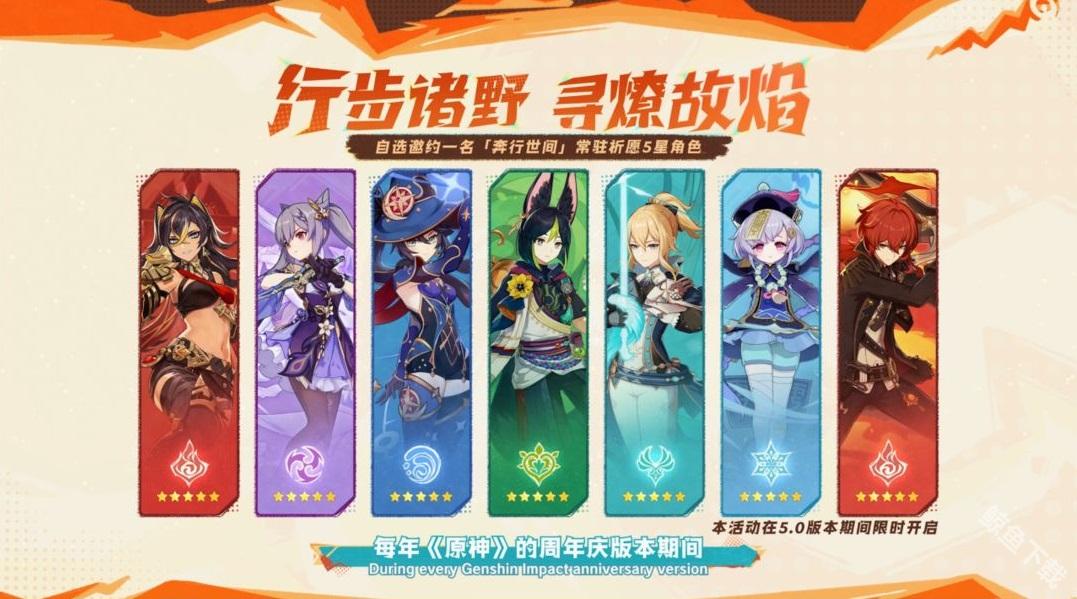 從今年開始,每年原神周年紀念版期間,所有解鎖祈禱系統的旅行者都有機會免費獲得永久池中的任意五星級角色。