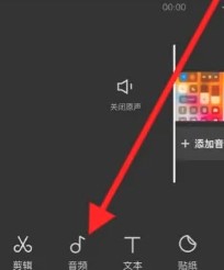 1、點(diǎn)擊打開簡(jiǎn)影App,然后點(diǎn)擊頁面“開始創(chuàng)作”上的+,上傳視頻后點(diǎn)擊右下角的“音頻”;