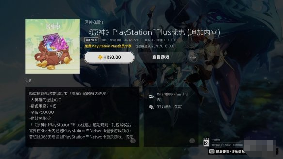 這是PlayStation Plus 會員的永久福利。每次“原神”更新為大版本時,領取機會都會刷新。