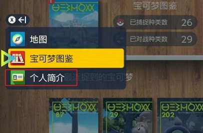 1.如何查看個人簡歷。使用X通過圖鑒呼出菜單欄。這里可以看到我們的個人簡歷和地圖,這是手機Rotom的效果。